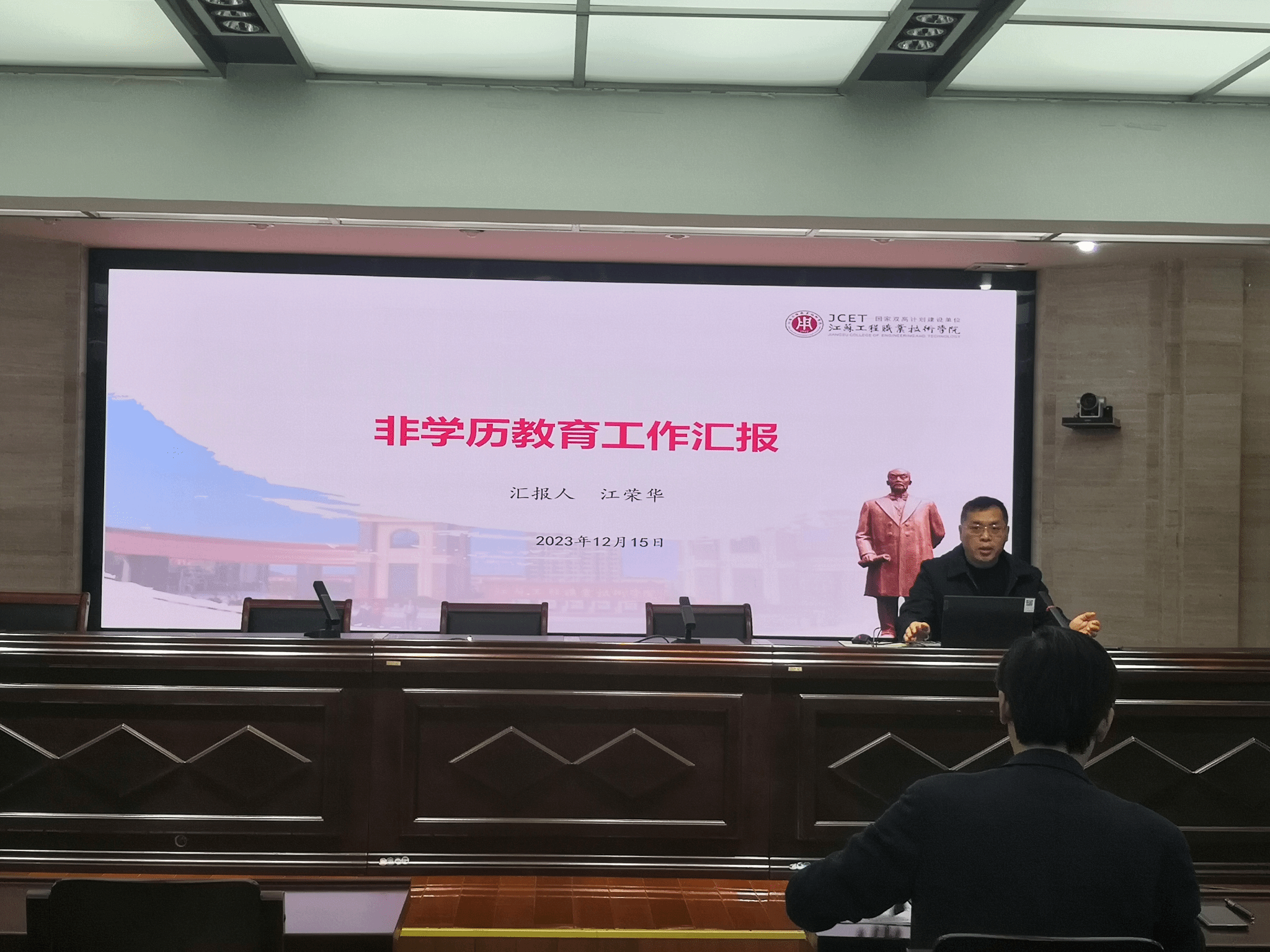 会上,继续教育学院院长江荣华、副院长冯思遐分别就学校的非学历教育、高等学历继续教育进行了工作汇报,建筑工程学院杨化奎院长做了交流发言。