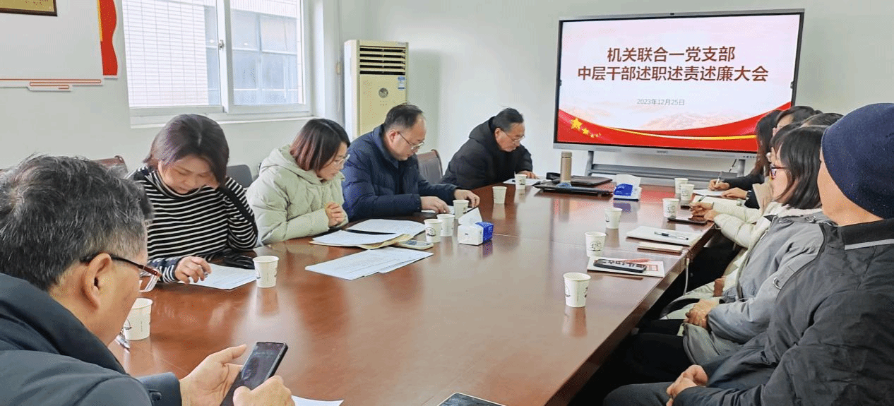 12月25日下午,机关联合一党支部在崇实楼202党员活动室召开了中层干部年度述职述廉述责大会。学校党委副书记邓海龙全程参与听取汇报。联合一党支部全体教职工参会。会议由支部书记储玲主持。