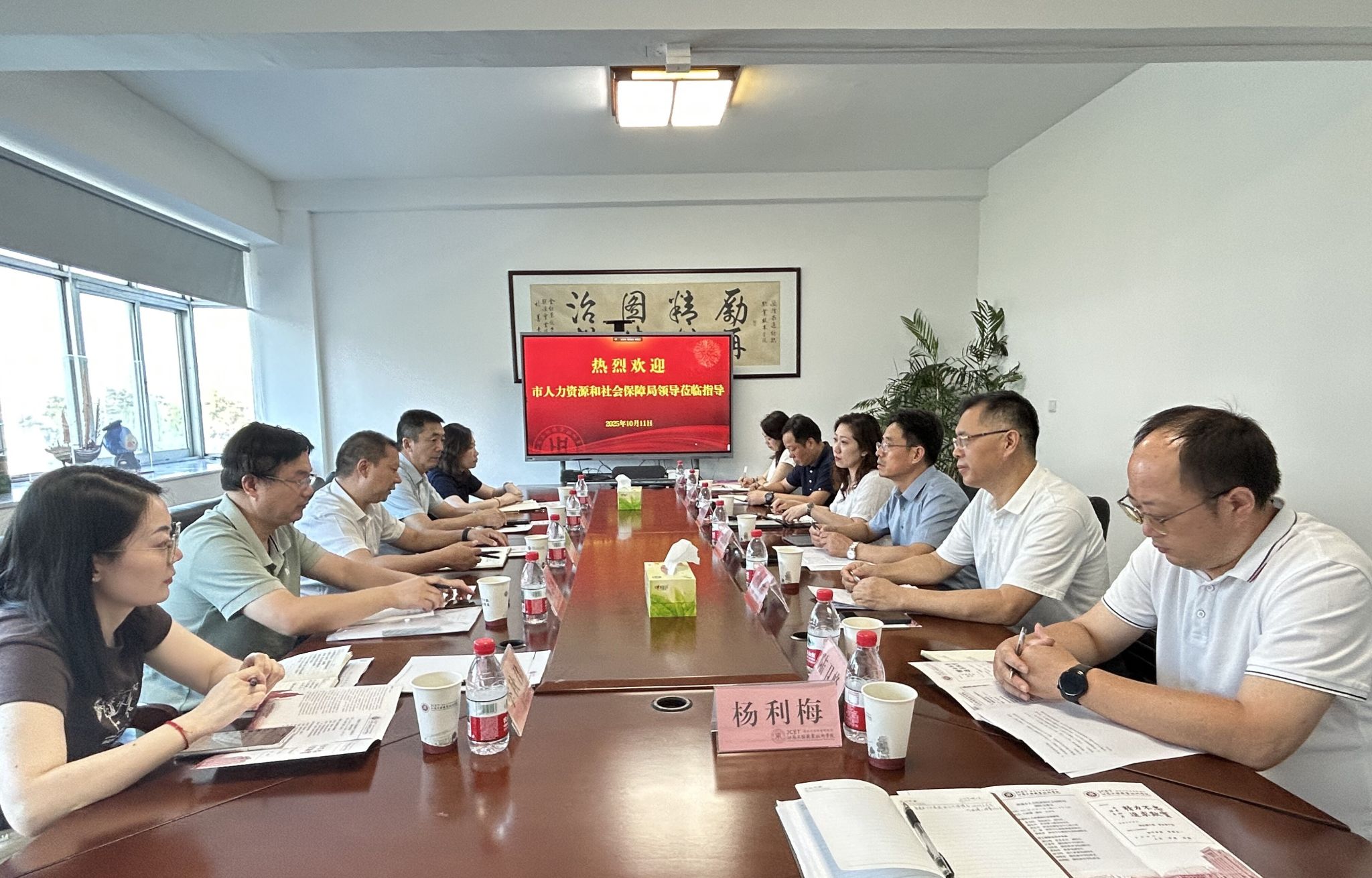 随后,我校相关部门负责人围绕调研主题,从毕业生就业服务、创业指导培训、职业技能鉴定等方面,详细汇报了近年来学校的具体举措、工作成效及典型案例,并就当前工作中遇到的难点问题与市人社局调研团队展开深入研讨,双方现场交流思路、探讨解决方案,为后续工作推进明确方向。
