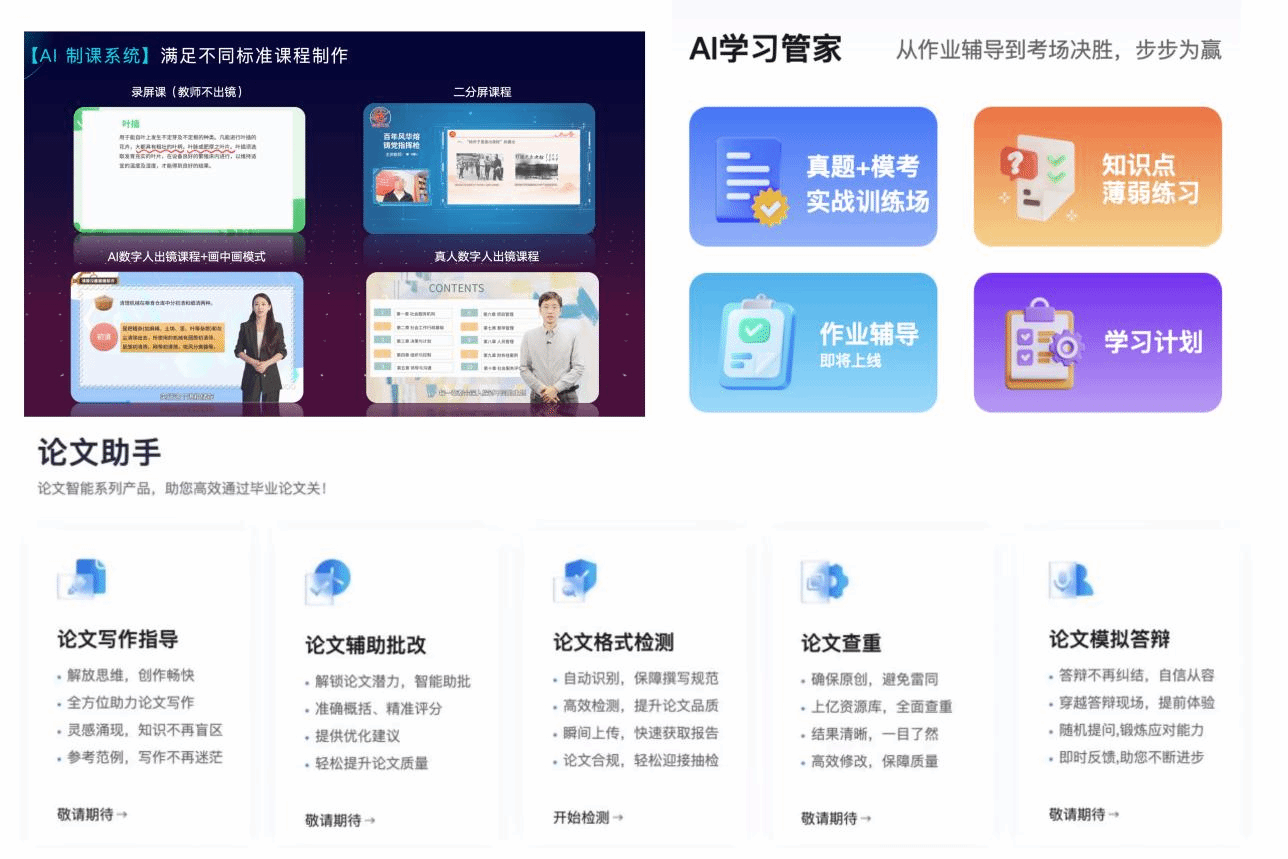 为进一步强化成人学历继续教育办学内涵,持续提升教学质量与服务水平,继续教育学院以人工智能技术为支撑,从课程教学、学习支持、学术服务三个维度着力优化成人学历继续教育教学与服务模式。一是构建AI成教课程体系,结合成人学习者的学习特点、职业需求及认知规律,依托AI技术精准匹配课程内容,优化课程结构,打破传统教学的时空限制,让学习更具针对性和灵活性;二是打造AI智能复习辅助功能,利用AI算法精准分析学习者的知识薄弱点,推送个性化复习资料、模拟习题,助力学习者高效备考、夯实知识基础;三是提供AI论文辅导与校验服务,通过AI技术为学习者提供论文选题指导、框架梳理、语法校验等支持,帮助学习者提升论文写作质量,规范学术表达。